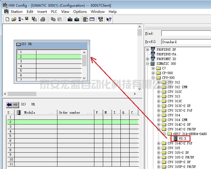 (6) 插入S7-300 CPU,與實(shí)際CPU 一致:6ES7 314-6EH04-0AB0 V3.3,如圖 59 所示。