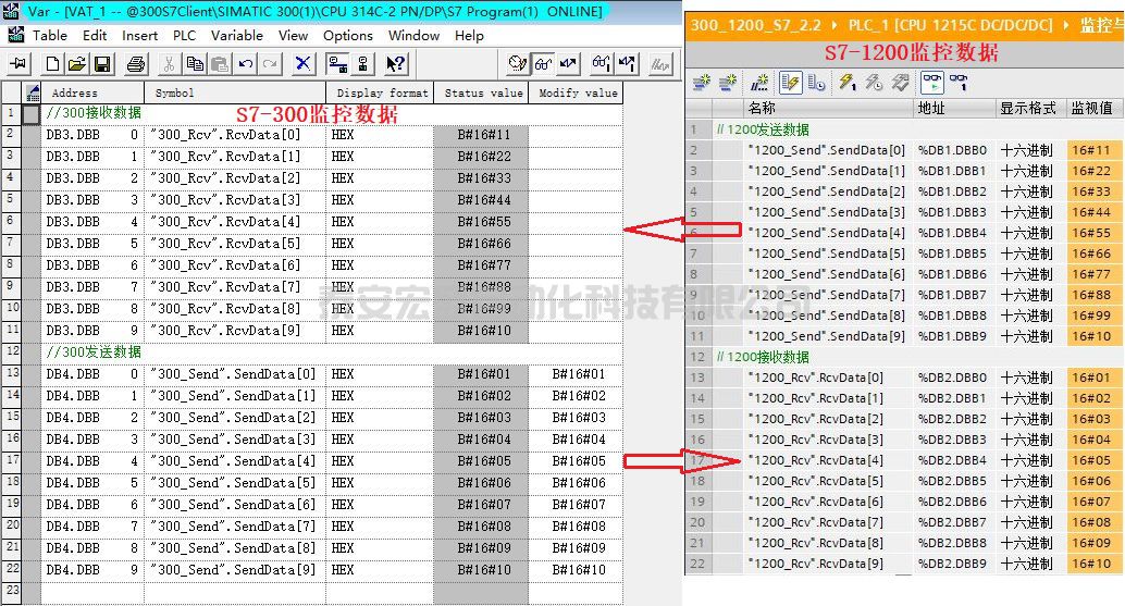 ② S7-300 CPU 將本地 DB4 中 10 個字節(jié)的數(shù)據(jù)寫到 S7-1200 CPU 的 DB2 中。