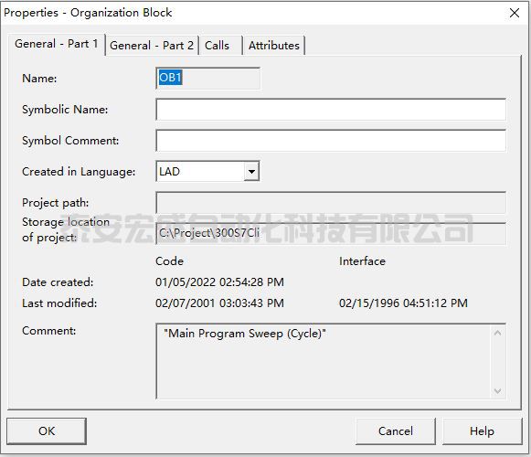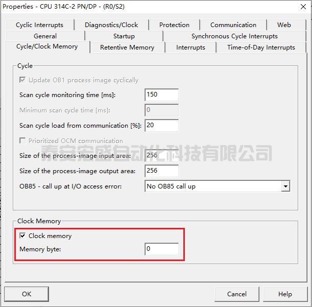 (1)在 S7-300 項(xiàng)目的 Hardware 中,右鍵點(diǎn)擊 CPU,選擇 Object Properties>Cycle/Clock Memory,勾選“Clock memory”,輸入Memory byte,如圖 89 所示。