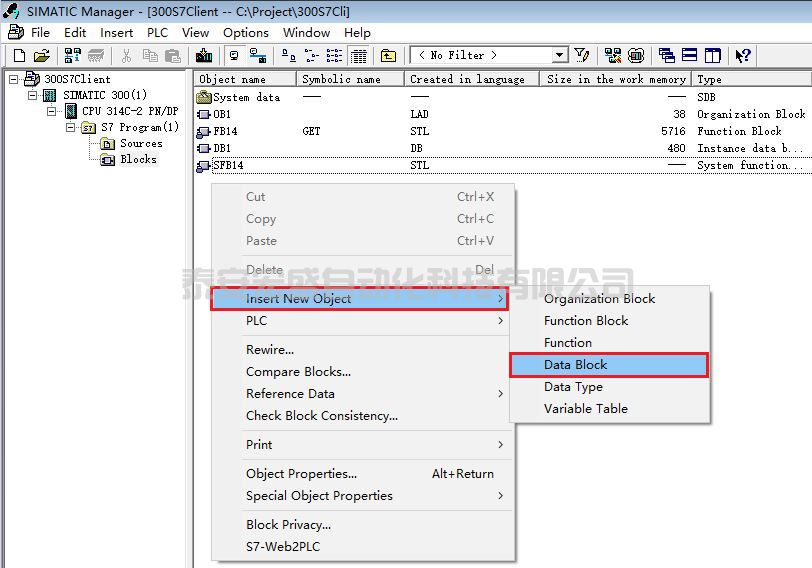 (1)創(chuàng)建并定義 S7-300 的接收數(shù)據(jù)區(qū) DB 塊。