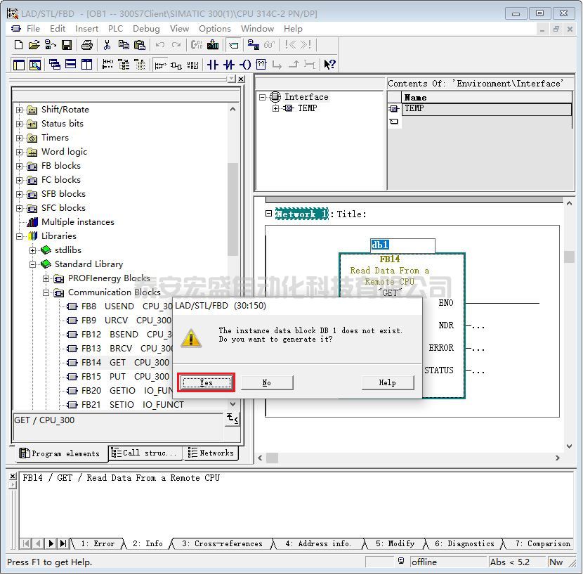 ① S7-300 CPU 讀取 S7-1200 CPU中 DB1 的 10 個字節(jié)數(shù)據(jù)到 S7-300 的 DB3 中。