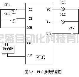 按照?qǐng)D5-6,完成PLC控制系統(tǒng)的硬件連接。圖中由于脈沖信號(hào)發(fā)生器的信號(hào)與按鈕輸入信號(hào)不同,因此,不能共用一個(gè)COM端。