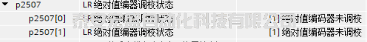 這里需要注意,P2507屬于編碼器數(shù)據(jù)組,其下標(biāo)[0]和[1]分別代表編碼器1數(shù)據(jù)組和編碼器2數(shù)據(jù)組,見下圖,這時(shí)就需要查看是對哪個(gè)編碼器執(zhí)行絕對值編碼器的校準(zhǔn)操作了,或者說,你的絕對值編碼器配置在編碼器1里,就執(zhí)行參數(shù)P2507[0],如果你的絕對值編碼器配置在編碼器2里,就執(zhí)行參數(shù)P2507[1]。