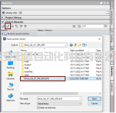 3. 在項目中導(dǎo)入S7-300/400的Drive_Lib庫。