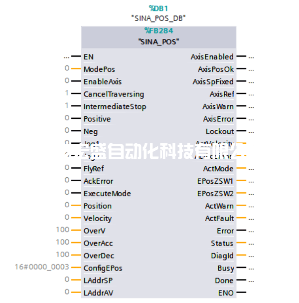 4.在OB1中調(diào)用SINA_POS(FB284) 實現(xiàn)S120的基本定位控制。