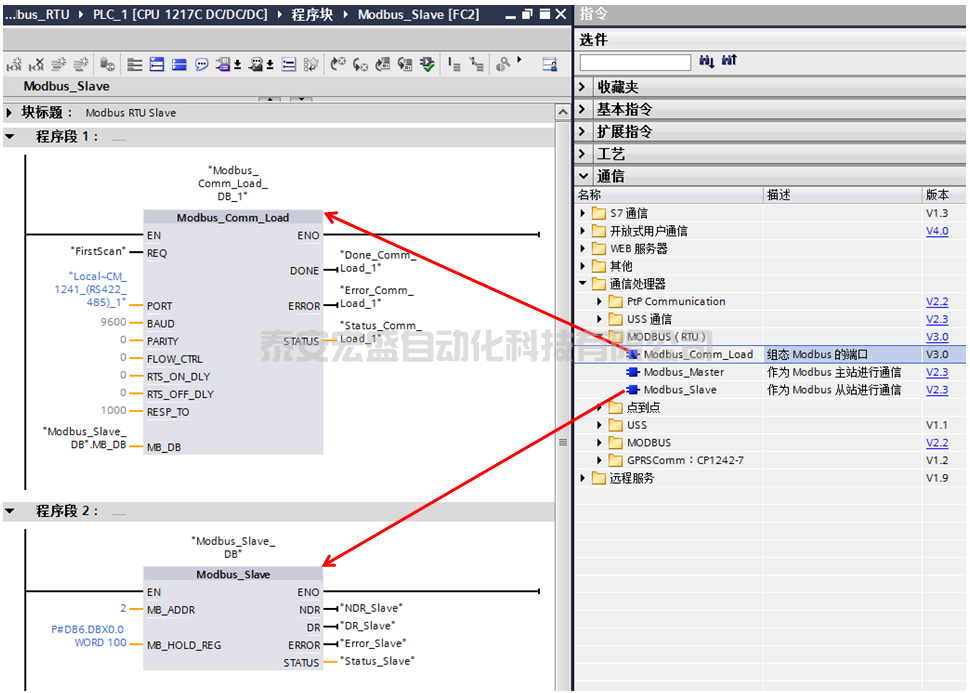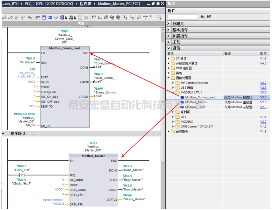 博途V13 SP1版本軟件中提供了2個版本的Modbus RTU指令: