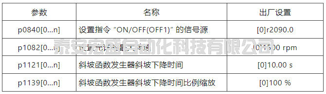 注意:當控制權(quán)在調(diào)試軟件控制面板(STARTER\Startdrive)、操作面板(BOP-2\IOP-2)時OFF2(P844)、OFF3(P848)開關(guān)量連接器輸入的信號無效。