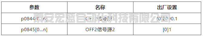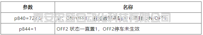 設(shè)置參數(shù)p0844[X],p0845[X]兩個參數(shù)為邏輯與的關(guān)系,當有一個參數(shù)置0時變頻器觸發(fā)OFF2停車命令。