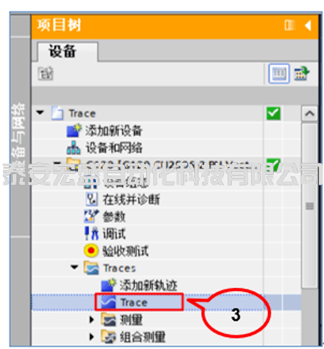 在項目樹下找到變頻器,雙擊“添加新軌跡”,如圖1-1所示;添加好的新Trace會顯示在Traces文件夾下,如圖1-2所示。