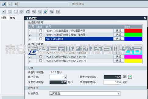 驅(qū)動(dòng)調(diào)試軟件提供了強(qiáng)大的Trace功能,即能夠跟蹤某些重要的參數(shù)(例如轉(zhuǎn)速,輸入輸出電流,直流部分電壓…),并以曲線形式記錄下來,便于調(diào)試人員進(jìn)行分析。工程師可以把需要的驅(qū)動(dòng)信號添加到信號表中進(jìn)行跟蹤記錄,進(jìn)行驅(qū)動(dòng)運(yùn)行狀態(tài)的分析,可做為判斷故障的來源輔助手段。
