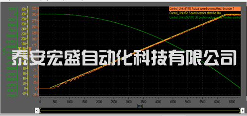 首先設(shè)置P1300=0,使變頻器運行在開環(huán)方式下,然后給定速度并啟動變頻器。變頻器運行后,查看參數(shù)r61的值與設(shè)定速度r62的值是否一致,如果這兩個值一致,則說明方向正確。如果這兩個值相反,則說明當(dāng)前速度編碼器的方向反了,就像下圖曲線顯示的一樣,這時就需要對速度編碼器反饋的速度實際值進(jìn)行取反操作了。