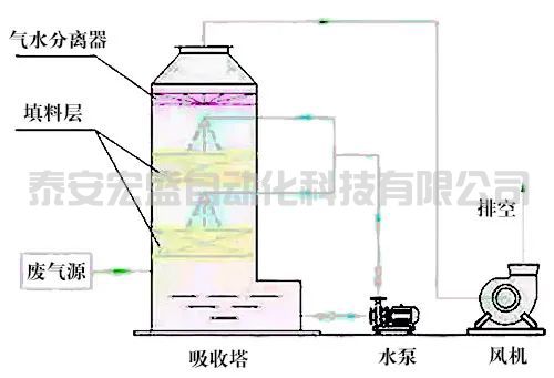 吸收法是指廢氣和洗滌液接觸將VOCs從廢氣中移走,之后再用化學(xué)藥劑將VOCs中和、氧化或由其他化學(xué)反應(yīng)破壞。該方法適合處理高水溶性有機廢氣VOCs。