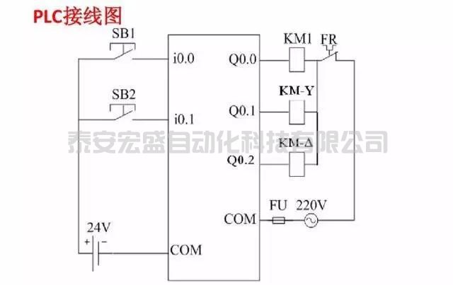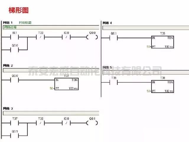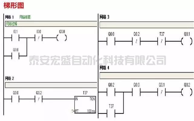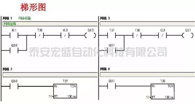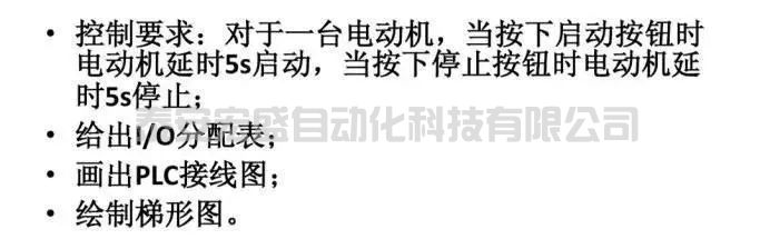 四、電動機延時啟動、停止控制(I/O分配表、PLC接線圖、梯形圖程序)