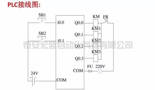 一、電動機順序啟動、順序停止控制(I/O分配表、PLC接線圖、梯形圖程序)