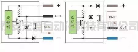 PNP型當(dāng)傳感器有檢測(cè)信號(hào)VT導(dǎo)通,正極的電流流向輸出端OUT,輸出端OUT電位接近正極,通常說的低電平翻轉(zhuǎn)成高電平。