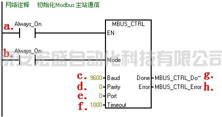 使用 SM0.0 調(diào)用 MBUS_CTRL 完成主站的初始化,并啟動(dòng)其功能控制: