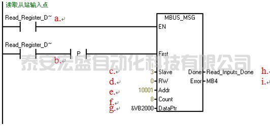 2. 該例程僅訪問一個(gè)從站,多個(gè)MBUS_MSG指令輪詢執(zhí)行,若訪問不同的從站,可通過改變從站地址來實(shí)現(xiàn)。