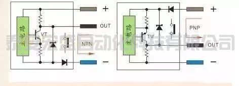 PNP型當(dāng)傳感器有檢測信號VT導(dǎo)通,正極的電流流向輸出端OUT,輸出端OUT電位接近正極,通常說的低電平翻轉(zhuǎn)成高電平。