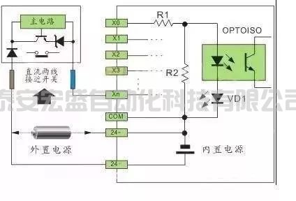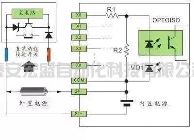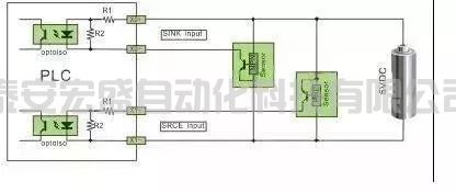 SINK漏型為電流從輸入端流出,那么輸入端與電源負極相連即可,說明接口內(nèi)部的光電耦合器為單端共點為電源正極,可接NPN型傳感器。
