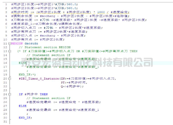 最開始采用2段速度后,同步區(qū)與非同步區(qū)通過取出刀的兩個位置,因為反饋的實時性難以保證導致,同步區(qū)與非同步區(qū)的對應關系會有所變化,使得長度波動很大。改動后采用一個切入點通過定時功能,基本保證了每轉的同步區(qū)與非同步區(qū)的時間,使得袋長基波動很小在1MM左右