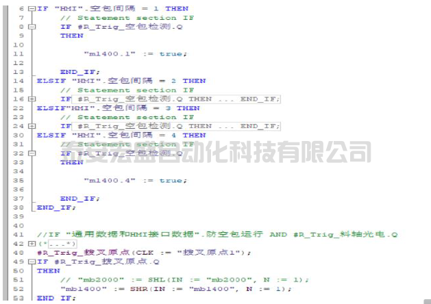 通過750報文讀出實時扭矩,通過扭矩的比較進行防切操作,防切后刀自動反向定位刀定停點,膜軸及撥叉向前移動一個袋長,整機停車。處理完切料狀態(tài)后,直接開啟包裝機無需調整可以正常運行。