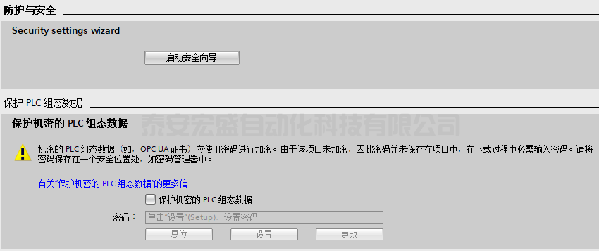 “啟動安全向?qū)А保篤4.5 開始支持。此按鈕可以啟動安全向?qū)?,設(shè)置防護(hù)與安全相關(guān)參數(shù),如圖 PLC 安全向?qū)гO(shè)置。