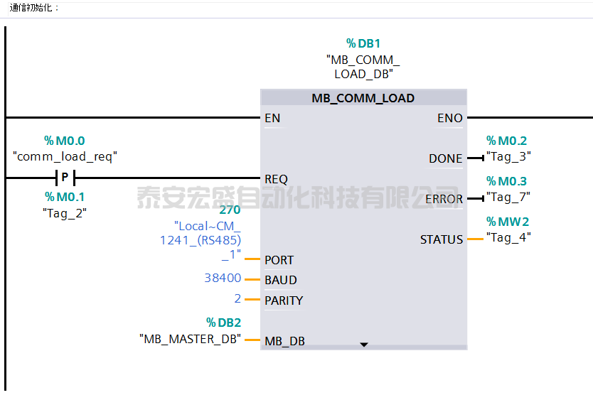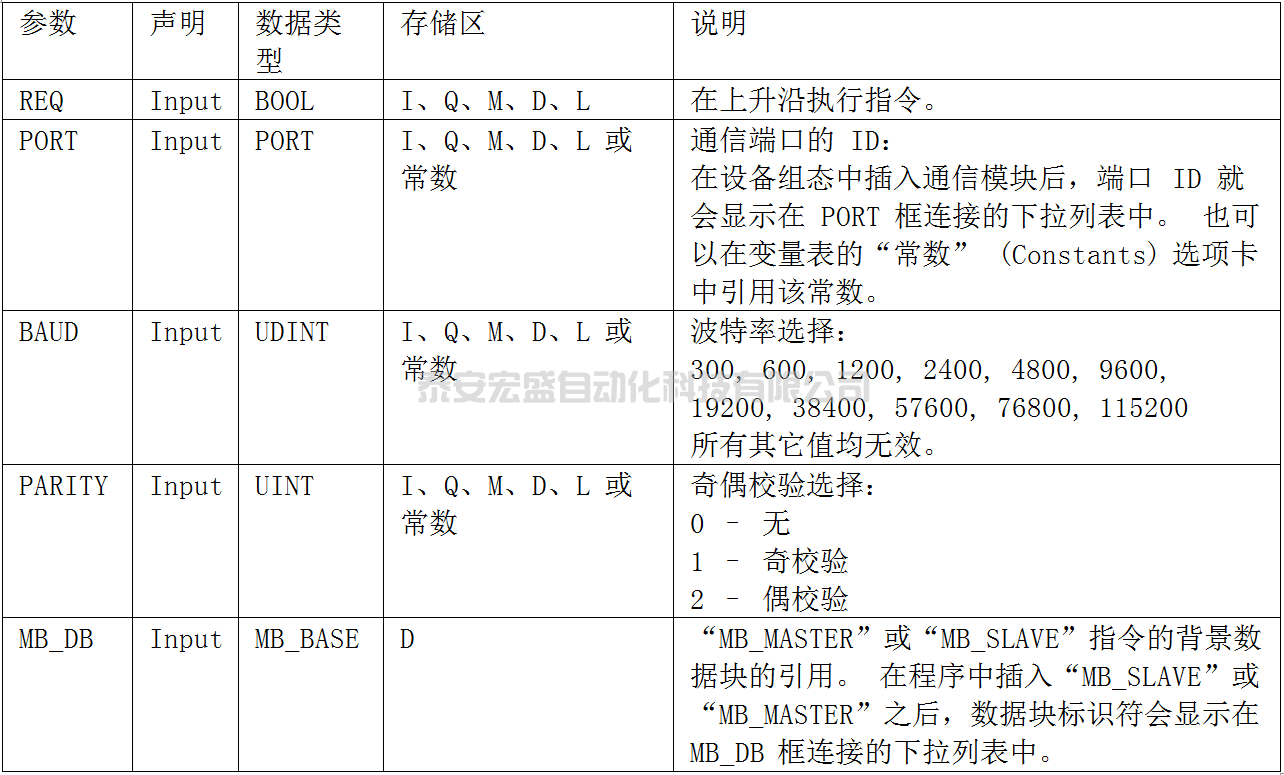 插入"MB_MASTER"或"MB_SLAVE"指令時,將指定背景數(shù)據(jù)塊。當(dāng)在"MB_COMM_LOAD"指令中指定 MB_DB 參數(shù)時,將引用該背景數(shù)據(jù)塊。