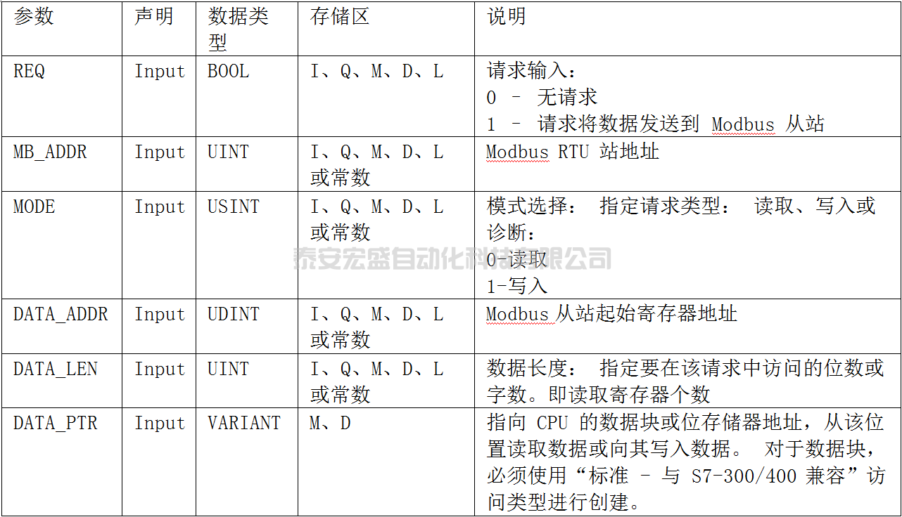 注意:在使用 V3.0 版本的 Modbus_Comm_Load 時,需手動將背景數(shù)據(jù)塊的靜態(tài)參 數(shù) MODE 修改為 4(0 = 全雙工 (RS232), 1 = 全雙工 (RS422) 四線模式, 4 = 半雙工 (RS485) 兩線模式)。