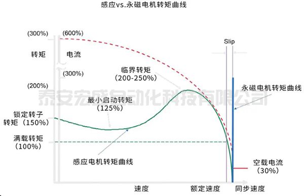永磁電機(jī)是一種同步電機(jī),其電機(jī)轉(zhuǎn)速等于變頻器指令的頻率,并且只能在同步轉(zhuǎn)速下產(chǎn)生扭矩。