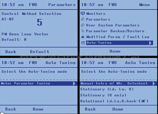 可以采用不同的自動(dòng)調(diào)諧方法。調(diào)諧過(guò)程允許變頻器通過(guò)計(jì)算和優(yōu)化參數(shù),以更緊密地匹配電機(jī)特性。數(shù)據(jù)表上的信息是已知的,因此與其說(shuō)是調(diào)諧,不如說(shuō)是輸入電機(jī)信息。