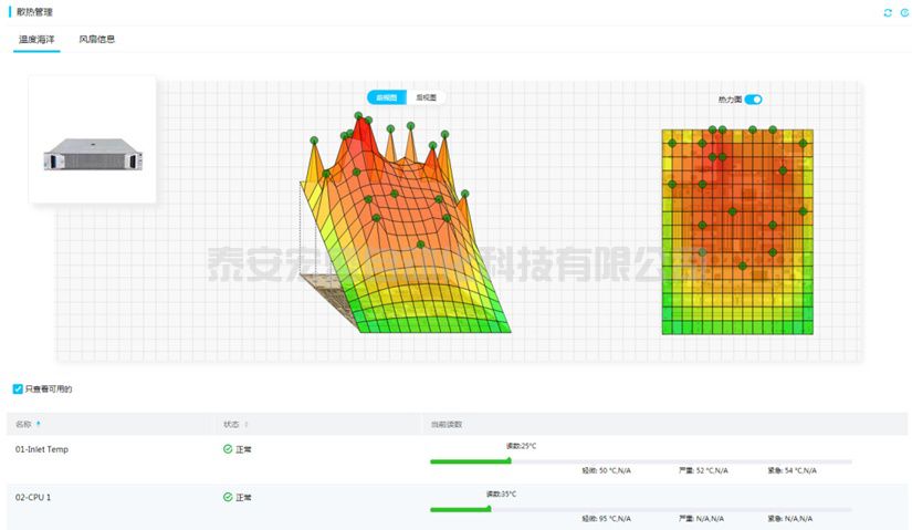 HDM提供了豐富的管理接口(IPMI/HTTPS/SNMP/Redfish),滿足多方式的系統(tǒng)集成需求;提供多樣的遠(yuǎn)程維護(hù)手段,支持虛擬KVM,支持RAID帶外監(jiān)控配置,支持BIOS/BMC/RAID配置導(dǎo)出,提升服務(wù)器遠(yuǎn)程管理效率;提供先進(jìn)的故障監(jiān)控與診斷,支持Syslog報(bào)文、Trap報(bào)文和e-mail上報(bào)告警,對(duì)服務(wù)器進(jìn)行全面的精細(xì)監(jiān)控,支持SHD(Smart Hardware Diagnosis,智能硬件診斷系統(tǒng)),方便故障定位和更換;支持安全管理特性,雙鏡像備份,PFR固件保護(hù)功能等。除此之外,H3C HDM Web端還支持溫度海洋視圖,熱力圖,可實(shí)時(shí)顯示服務(wù)器機(jī)箱中各組件溫度傳感器的分布圖及數(shù)值。同時(shí)H3C UniServer服務(wù)器部分可選配3.5英寸可觸摸LCD液晶顯示屏,可直接從HDM獲取服務(wù)器狀態(tài)信息,方便了服務(wù)器的臨場(chǎng)巡檢及維護(hù)。H3C全系列服務(wù)器標(biāo)配HDM管理系統(tǒng),兼具安全可靠、運(yùn)維高效、開(kāi)發(fā)敏捷的產(chǎn)品特性,致力于為百行百業(yè)客戶提供更智能的管理平臺(tái)。