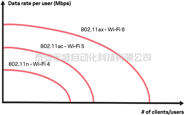 2013年,Wi-Fi 5(即IEEE 802.11ac)帶來了性能的又一次飛躍,最高達(dá)到6.8 Gbps,運(yùn)行在5 GHz頻段。此后,Wi-Fi 6 提供了更多性能改進(jìn),并增強(qiáng)了其更高效地處理來自更多客戶端、更多流量的能力,這就是為什么它也被稱為高效無線(HEW)的原因。