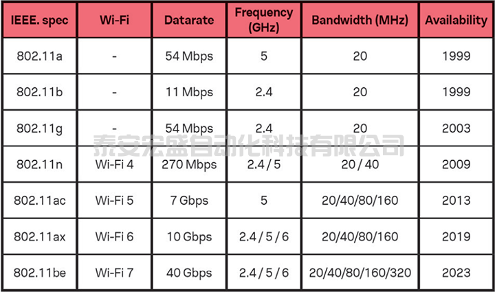 ▲圖2:此圖表顯示了Wi-Fi在數(shù)據(jù)速率、頻率和帶寬等方面的不斷發(fā)展。